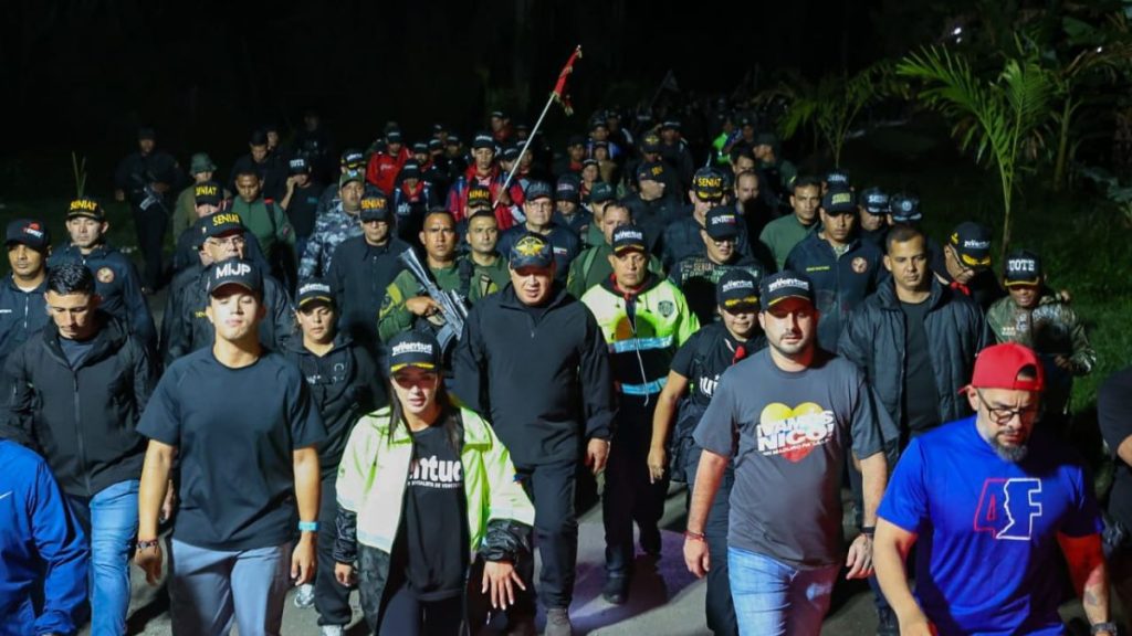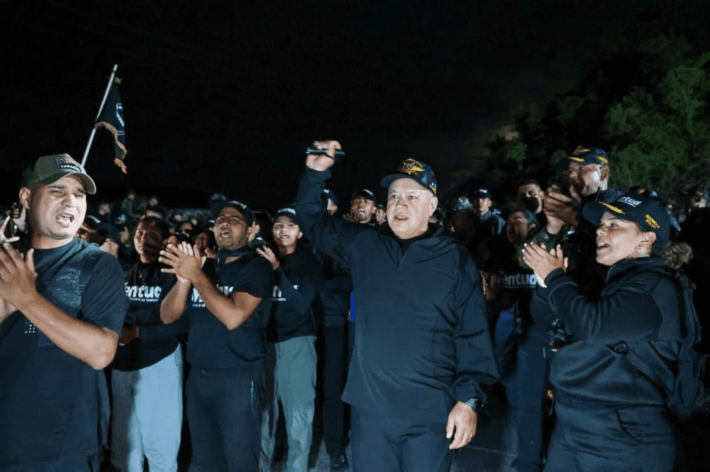 La madrugada de este jueves, el secretario general del Partido Socialista Unido de Venezuela (PSUV), Diosdado Cabello Rondón, lideró la caminata nocturna realizada en la parroquia Macarao, en Caracas por parte de los jóvenes militantes de la tolda roja que forman parte de la primera cohorte del campamento de Entrenamiento Básico de Resistencia Revolucionaria.