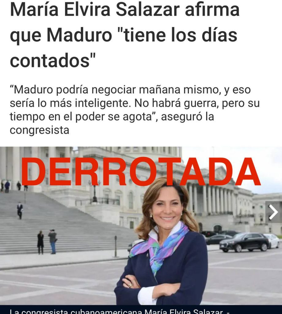 «En su reciente artículo de prensa, la derrotada y acomplejada María Elvira Salazar confiesa abiertamente que promueve una política de ‘cambio de régimen’ contra Venezuela, una práctica ilegal e ilegítima que viola la Carta de las Naciones Unidas», denunció este jueves el canciller de Venezuela, Yván Gil.