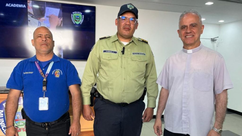 El párroco de la Basílica de Santa Teresa Vicario Armelim de Sousa se reunió con el subdirector de la Policía de Chacao José Ramírez para elaborar todo el plan operativo relacionado con la seguridad ciudadana, y control vial urbano del evento litúrgico.