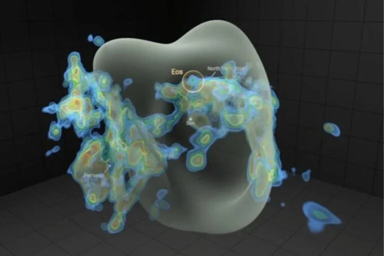 La nube, llamada Eos por la diosa griega del amanecer, se captó a unos 300 años luz de nuestro sistema solar. Es una de las estructuras más grandes de las que hay en el cielo y podría ser la nube molecular más cercana a la Tierra según un trabajo publicado esta semana en Nature Astronomy. Como está tan cerca, les ofrece a los astrónomos un asiento en primera fila para observar el universo molecular y el proceso de formación de estrellas.