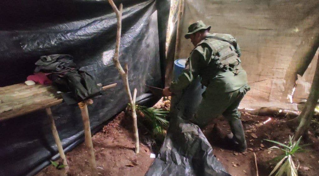 En otra operación en Guayana se destruyó otro campamento ilegal, específicamente en zona de la comunidad indígena de Carida.