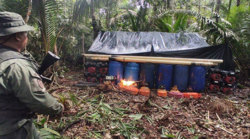 «Todo el material fue incinerado en el lugar de los hechos, lo cual sirve de soporte logístico para las actividades de minería ilegal. Procedimiento notificado al Ministerio, dijo Hernández Lárez.