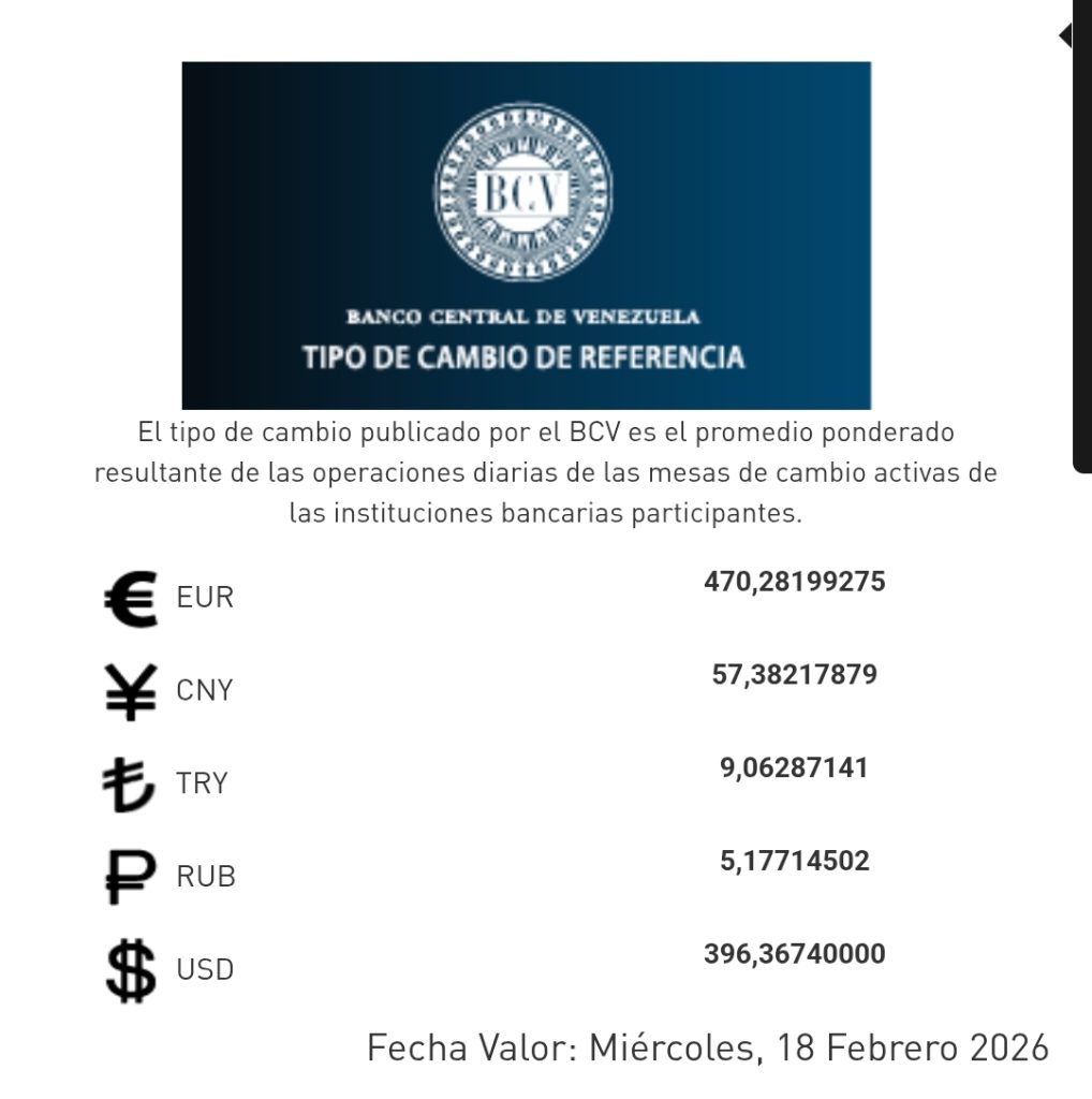 El tipo de cambio publicado por el BCV es el promedio ponderado de las operaciones de las mesas de cambio activas de las instituciones bancarias participantes.