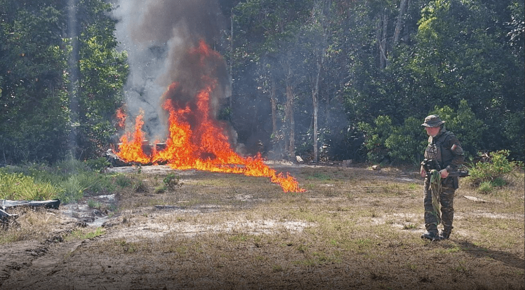 El jefe del Comando Estratégico Operacional de la Fuerza Armada Nacional Bolivariana (Fanb), Domingo Hernández Lárez, informó que, en el estado Amazonas, destruyeron un campamento en el que detectaron 3000 litros de combustible de aviación AV-GAS y 70 de aceite Aeroshell W10 utilizados por grupos irregulares colombianos del narcotráfico.