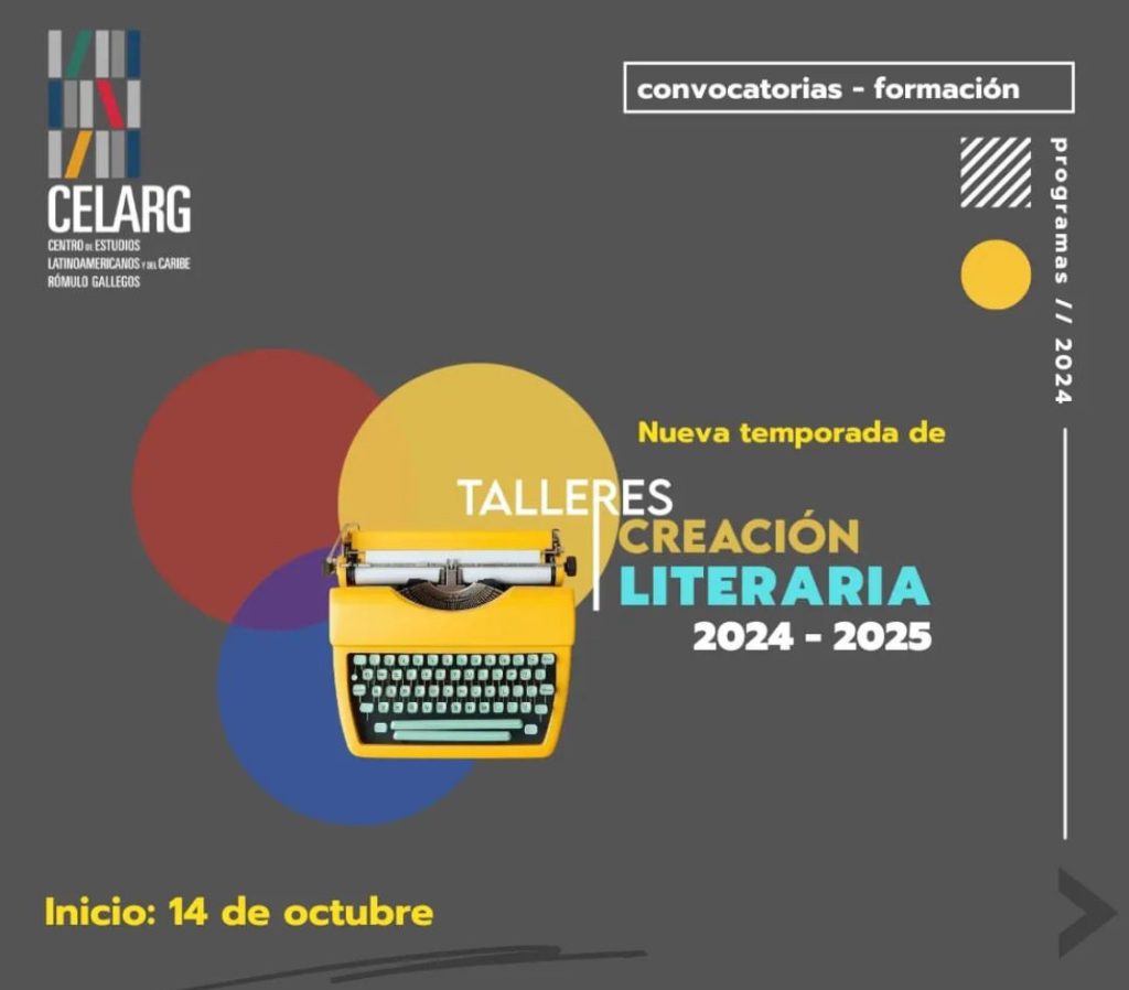 El Centro de Estudios Latinoamericanos y del Caribe Rómulo Gallegos (Celarg) invita a todos los interesados en la escritura a participar en su nueva temporada de Talleres de Creación Literaria 2024-2025. En esta nueva edición, que inicia el próximo 14 de octubre, los participantes podrán escoger entre Literatura Infantil, Ensayo, Narrativa, Dramaturgia y Poesía.