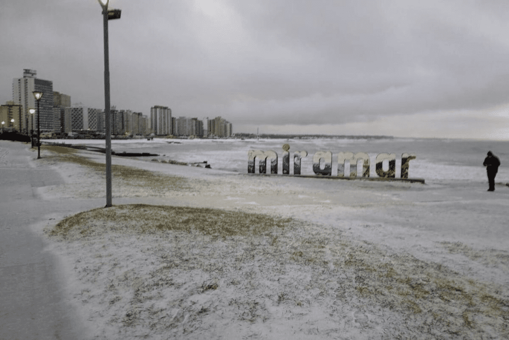 Vecinos de Miramar, Monte Hermoso, Mar del Plata, Costa del Este y San Eduardo del Mar en Argentina vivieron momentos de pánico cuando una intensa ola polar provocó una nevada sin precedentes con una temperatura que descendieron hasta rangos bajo 0°C.