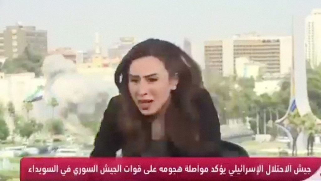 En las imágenes de @yediotnews, en Telegram, se ve a una presentadora dando las noticias en directo cuando se produce el ataque, momento en que la mujer se retira asustada, reseñó RT.