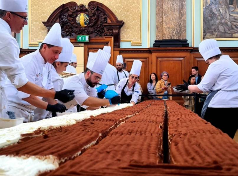 El mundo de la repostería alcanzó un nuevo récord en el Chelsea Town Hall de Londres, cona elaboración de un tiramisú de 440,58 metros de longitud reconocido oficialmente por el jurado de los Guinness World Records como el más largo jamás elaborado.
