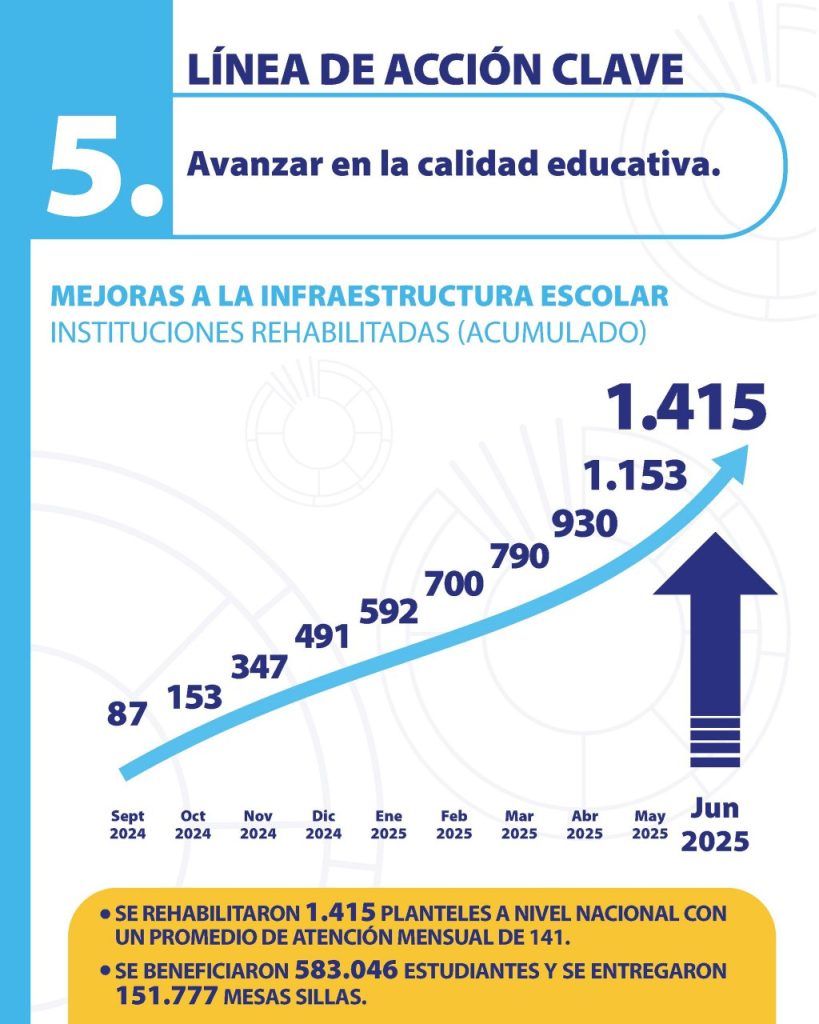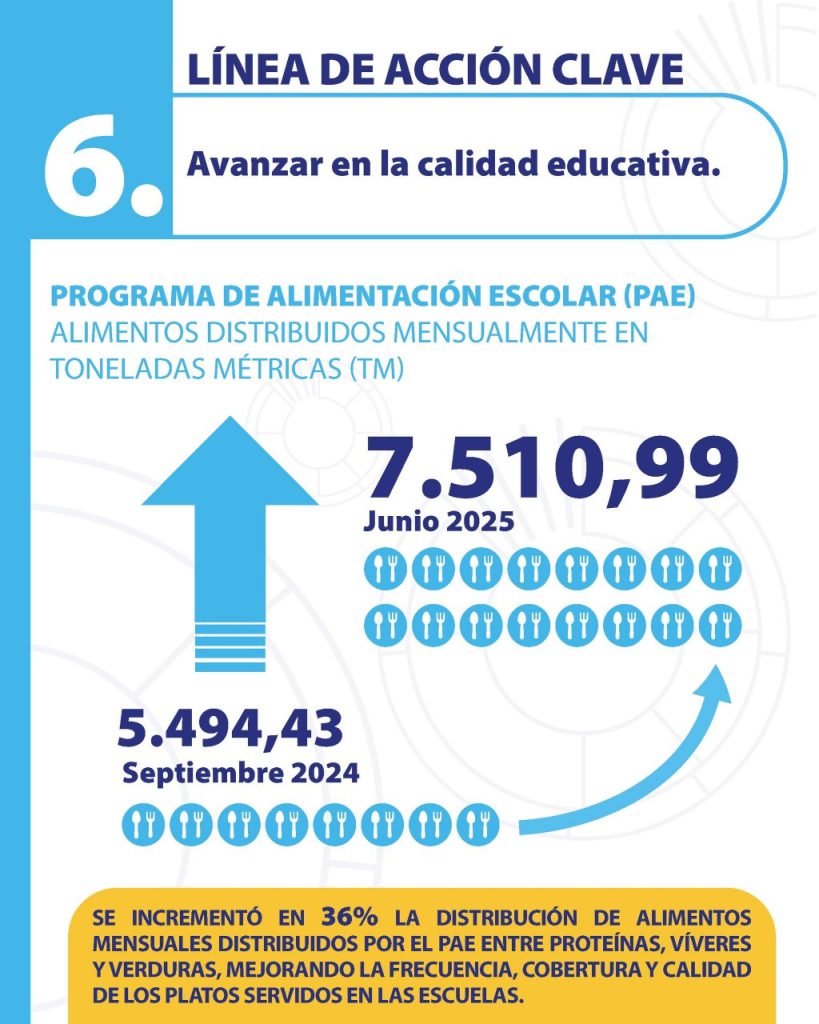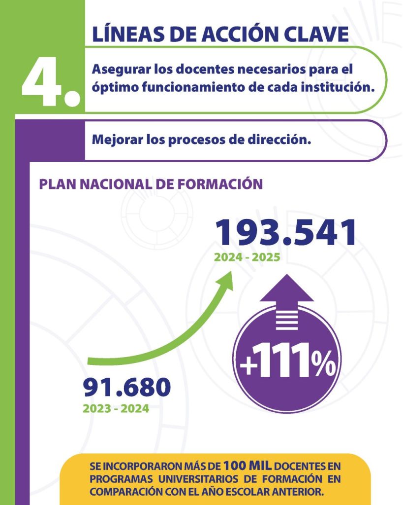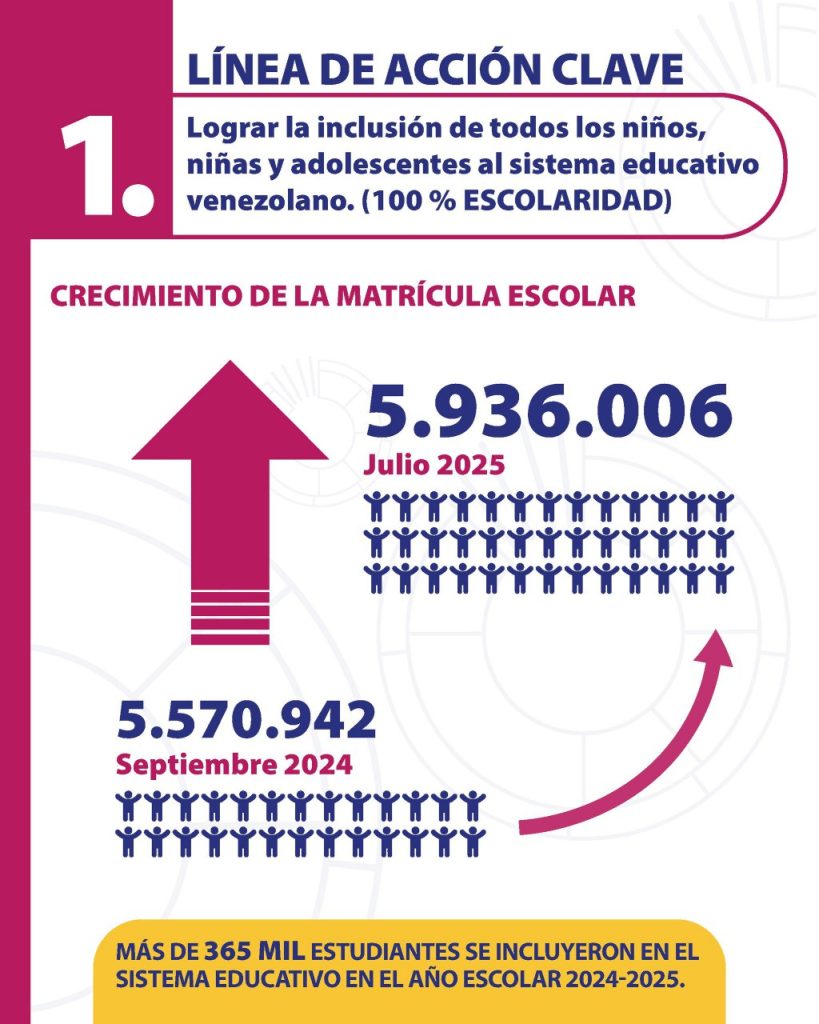 Rodríguez destacó que uno de los avances de gestión es el aumento de la matrícula escolar a 5.936.006, lo que se traduce en la inclusión de más de 365.000 estudiantes.