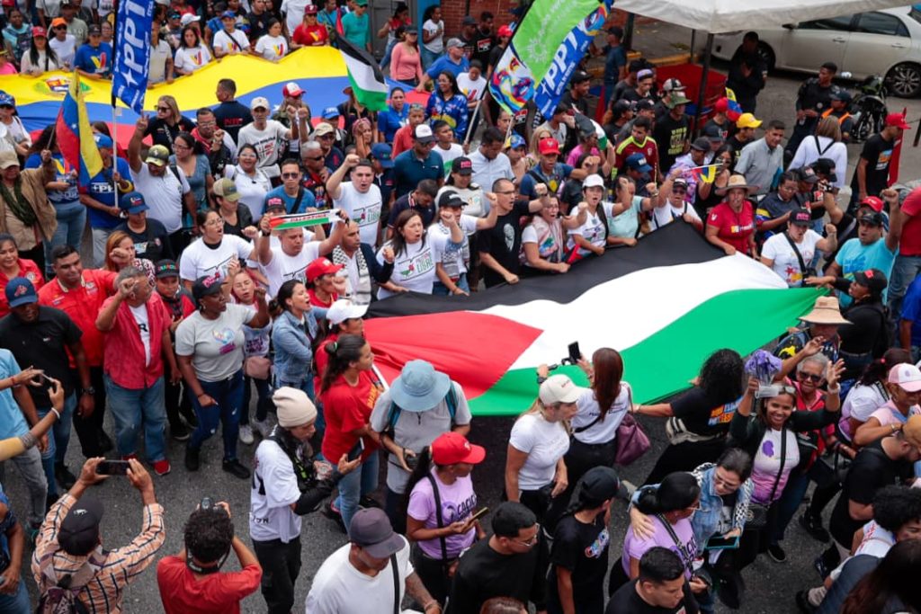 “Hoy aquí en este espacio Venezuela brinda su solidaridad al pueblo palestino, no es una guerra es un genocidio contra Palestina, contra los niños, contra las familias (…) aquí estamos nosotros en solidaridad con Palestina, aquí estamos nosotros dando una mano amiga”.
