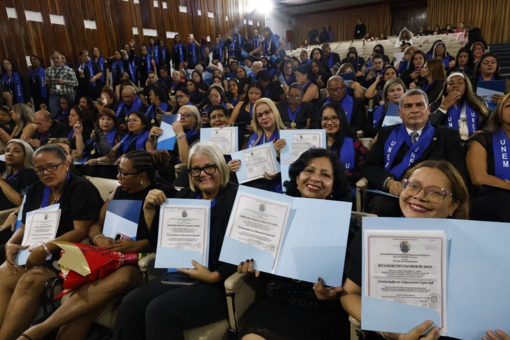 1.494 estudiantes de la Universidad Nacional Experimental del Magisterio Samuel Robinson recibieron este jueves sus títulos de grado y posgrado, en un acto realizado en el auditorio de la Fundación Casa Nacional de las Letras Andrés Bello, en Caracas.