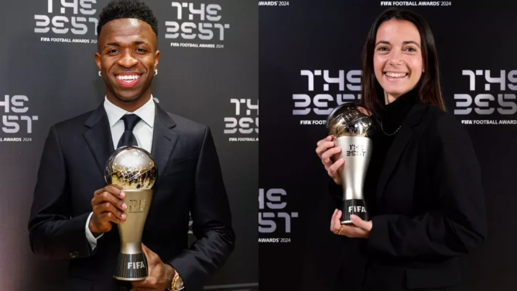 El brasileño Vinicius Junior, delantero del equipo español Real Madrid, y la española Aitana Bonmati del Barcelona fueron reconocidos este martes con el premio The Best FIFA 2024 durante una gala atípica realizada de manera telemática en la Aspire Academy de Doha, capital de Catar.