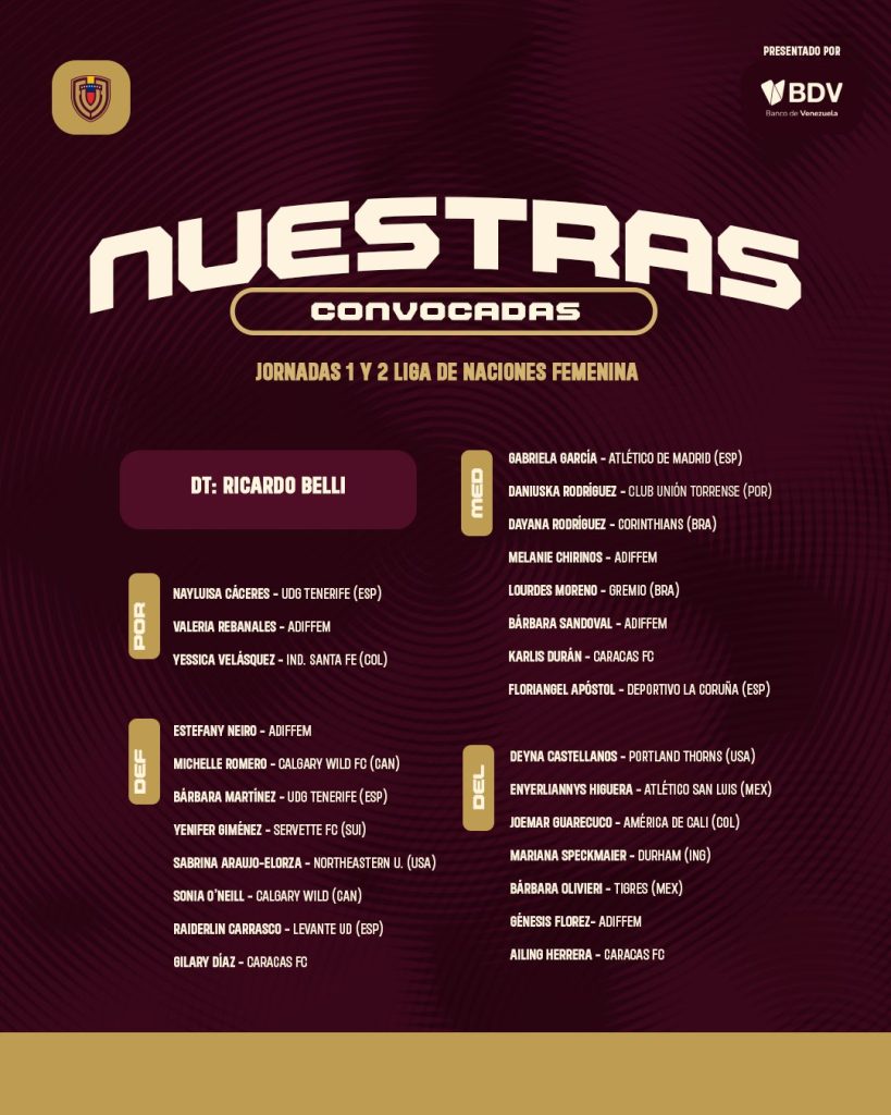 La FVF difundió este jueves la lista de convocadas de la Vinotinto femenina para los dos primeros partidos de las eliminatorias al Mundial de Brasil.
